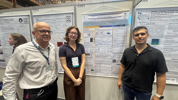 Por fim, o aluno Daniel Benvenutti, também do IFGW/Unicamp e orientado pelo professor Francisco Rouxinol, apresentou o trabalho “Caracterização Experimental e por Simulação de Qubits Supercondutores do Tipo Transmon Acoplados a Cavidades 3D”. A pesquisa, relacionada às atividades do NAMITEC voltadas ao desenvolvimento de tecnologias quânticas baseadas em circuitos supercondutores (A2.1), envolve a *extração de parâmetros energéticos e tempos característicos de relaxação (T₁) e defasamento (T₂)**, além do estudo de efeitos de ruído na coerência quântica utilizando simulações com a biblioteca QuTiP. O trabalho é apoiado pelo NAMITEC, e a bolsa do aluno foi financiada pelo PIBIC/CNPq.